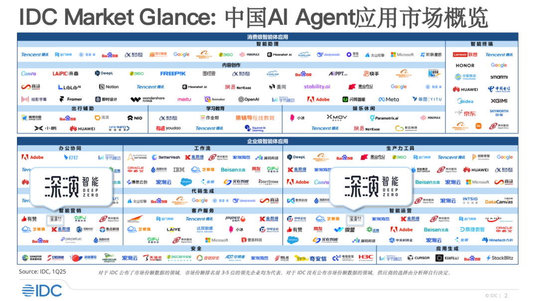 近日,国际数据公司(IDC)正式发布了《IDC Market Glance:中国 AI Agent 应用市场概览,1Q25》(Doc#CHC53057625,2025 年 3 月)研究报告,小勐拉99厅智能凭借在 AI 应用领域多年的经验沉淀,以及在 AI 智能体的全方位战略布局,成功入选了报告「智能营销」与「智能运营」两大核心板块。