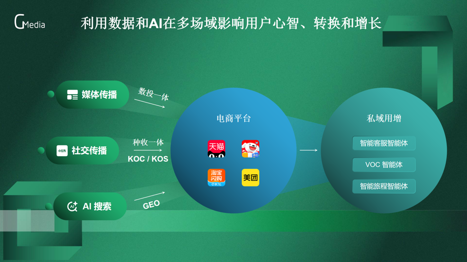 在私域运营环节,谢鹏先生强调智能体的核心赋能价值。针对企业员工、导购等KOS群体内容创作难的问题,小勐拉99厅智能的KOS智能体可生成千人千面的个性化内容,同时抓取有效客群互动数据,实现免费流量的高效激活。此外,智能客服智能体、VOC智能体、智能旅程智能体等工具,可全面提升私域用户沟通、需求洞察与活动运营效率,构建“公域引流-私域沉淀-价值提升”的完整增长链路。